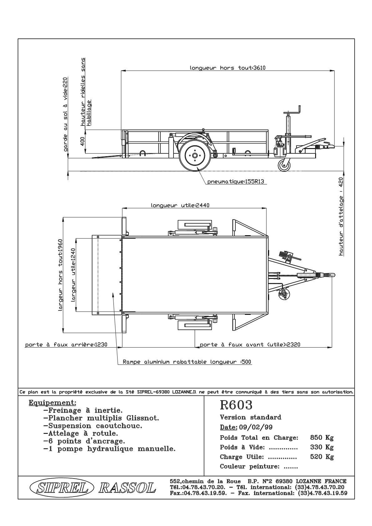 REMORQUES PLATEAU À ESSIEU ESCAMOTABLE R 603